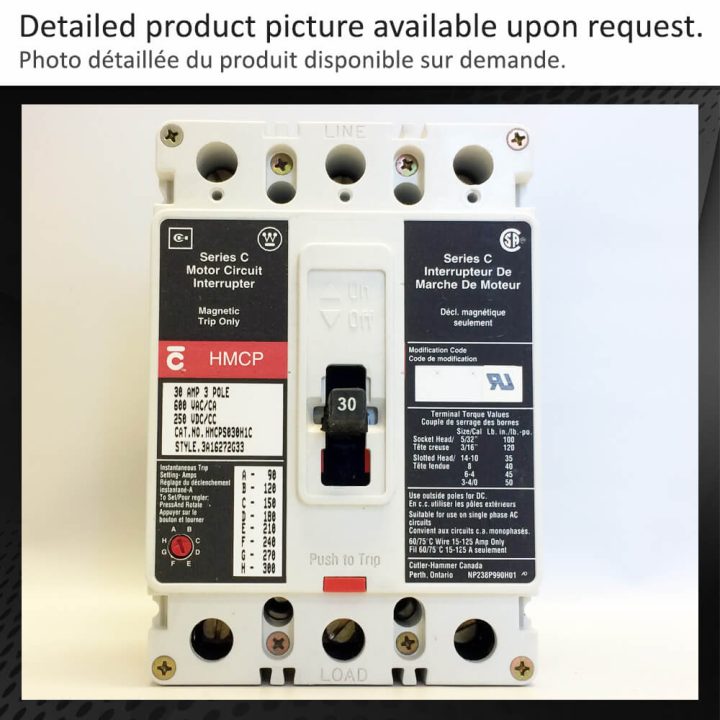 HMCPS030H1C-R DISJONCTEUR 30A 600V 3P CUTLER-HAMMER 404.25 $ quantité de DISJONCTEUR 30A 600V 3P CUTLER-HAMMER −+ Ajouter au panier