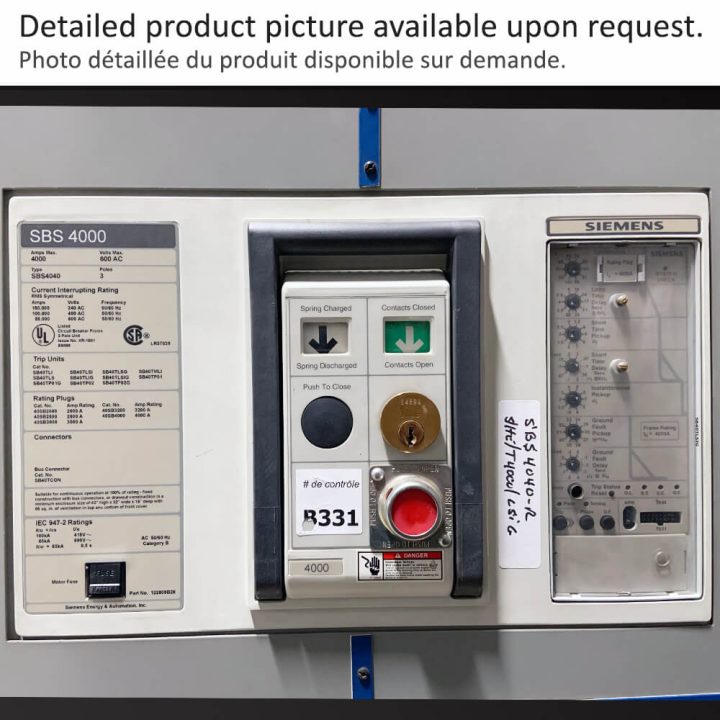 SBS4040-R BREAKER 4000A 600V 3P E/O FIXED SIEMENS 85KA 25,284.00 $ BREAKER 4000A 600V 3P E/O FIXED SIEMENS 85KA quantity −+ Add to cart